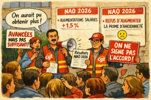 Résultat des NAO 2026 Actualités LDC Bourgogne 11 mars 2026 La dernière réunion de négociation s’est tenue ce jour. Vous retrouverez tous les détails dans le tract ci-dessous : Tract – Résultat des NAO 2026 CGTintéressementLDCNAOsalaires Article précédent NAO - 1ers résultats